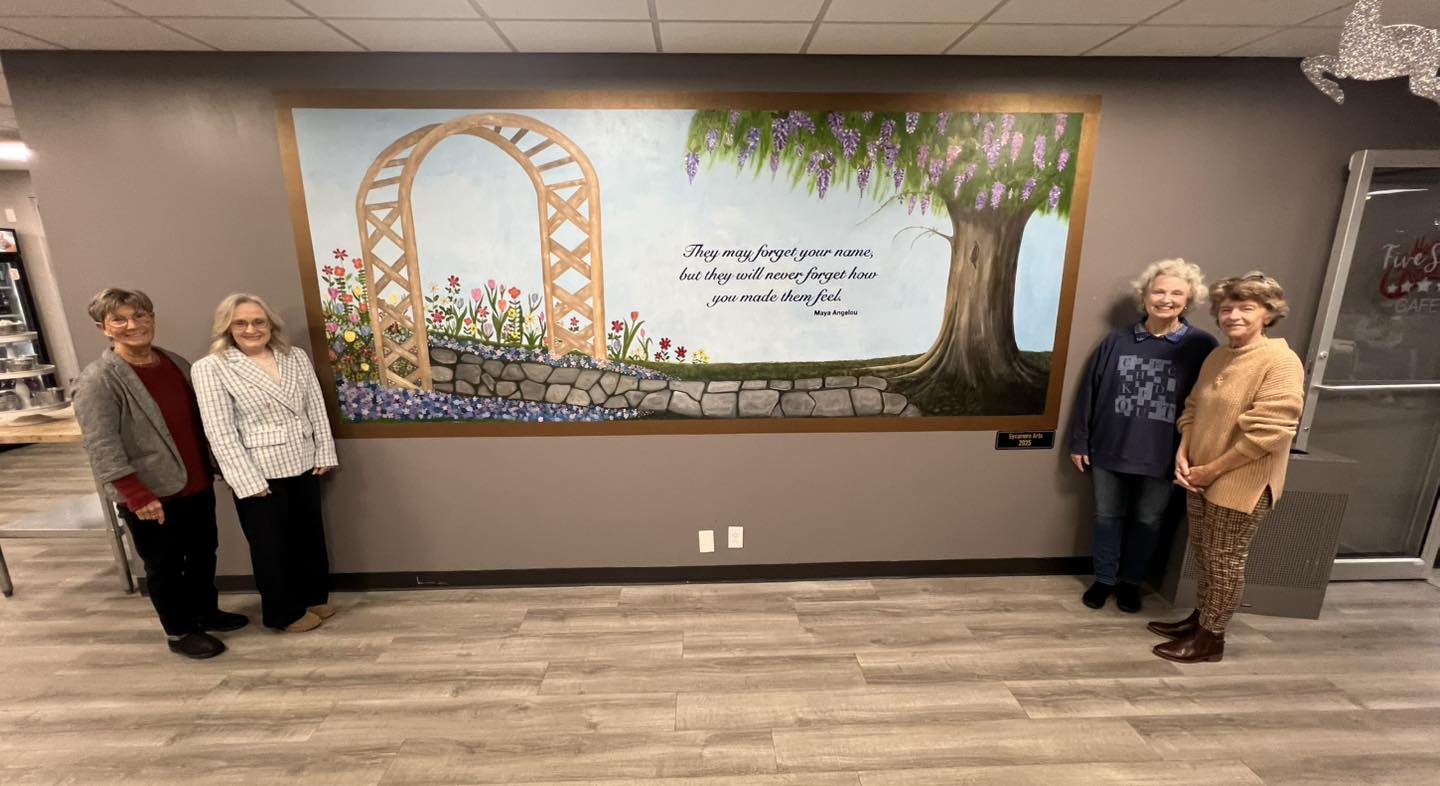 Sycamore Arts Council artists recently completed work on a mural project at Highland Hills Medical Center in Senatobia. The hospital was very grateful and said, “Thank you Sycamore Arts for the new mural in our cafĂ©. Because of this gift, the hospital is a little brighter and happier. We love the support our community gives us.” Pictured are arts council members Karen Brown, Jacqueline Dickerson, Council President Sharon Williams, and Rachel Roberts.